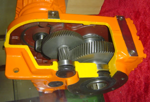 4.強度高、體積小:箱體采用高強度鑄鐵。齒輪及齒輪軸采用氣體滲碳淬火精磨工藝,因而單位體積承載能力高。